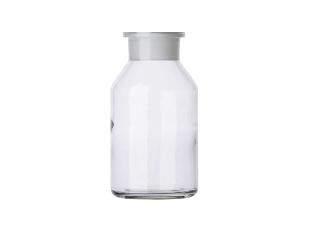 Fľaša reagen. Steilbrust - prachovnica, NZ, širokohrdlá, biela, bez zátky, SKLÁRNY MORÁVIA